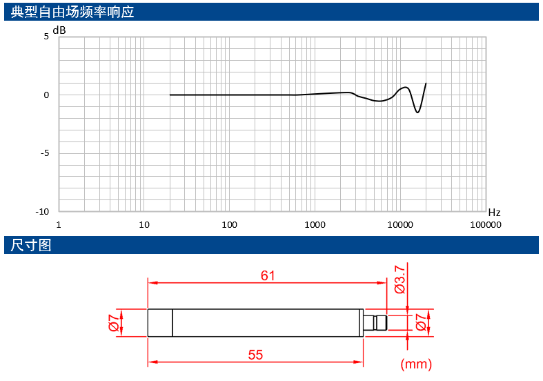 ● 灵敏度(@250 Hz):50 mV/Pa (-26 dB re 1V/Pa)