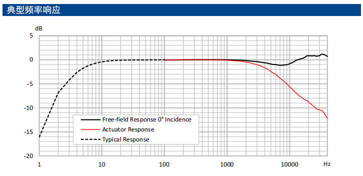 ● 灵敏度(@250 Hz):12.5 mV/Pa (-38 dB re 1V/Pa)