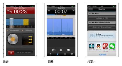 Pro750录音系统可录制.wav格式文件并进行回放,或使用苹果设备的远程传输功能(如微信、Facebook、e-mail等)将录音文件从测试现场传送至其他位置进行数据后处理。