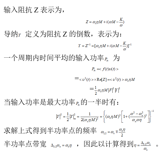 其中C为阻尼系数,x为振动速度,ζ为阻尼比,η为阻尼损失因子,从公式来看阻尼损失因子是阻尼比的两倍关系。