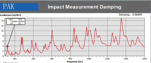 下图为使用BBM的PAK系统测试的频响曲线,针对模态峰值输出结构的阻尼损失因子。