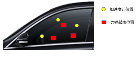下图为某汽车玻璃的阻尼测试,红色的点为敲击位置,黄色的为加速度传感器的布置位置。