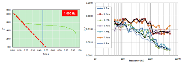 因此测试得到总能量的衰减时间T60即可求出系统的阻尼损失因子,一般前期的衰减更为关注,因此现在又可以通过测试T20和T30来得到系统阻尼。