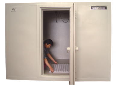 采用三边长最佳尺寸原理设计,内体积9立方米,箱体下方采用减振设计,测试频率范围为400~10000Hz。配有全套的测量系统,自带粉红信号发生器,内置扬声器及传声器,并配备四通道数据采集仪和测试分析软件。测得的四通道的混响时间被自动平均,测量可选1/1或1/3倍频程。整套测量系统由计算机控制,操作方便。