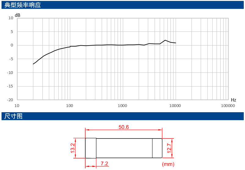 | 频率响应 (Hz) | 100 ~ 5 k (±2 dB), 50 ~ 10 k (±3 dB) |