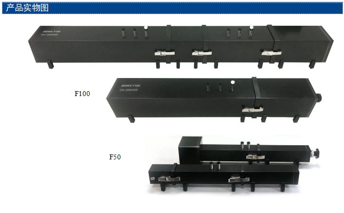 F 系列方形阻抗管内尺寸分别为102 mm(F100,测试频率范围45 Hz~1.6 kHz)和50mm(F50,测试频率范围800 Hz~3.45 kHz)。两种方形内尺寸阻抗管可联合使用以拓宽测试频率范围。